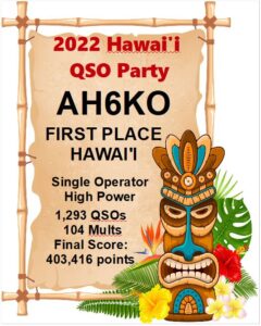 All participants shown in the Results can receive a certificate like the one below. These are PDF files sent to you by email. To request your printable certificate, send an email with your call to info@hawaiiqsoparty.org